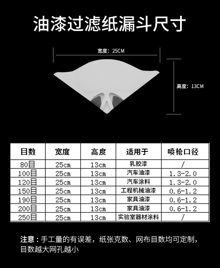 亚马逊热卖一次性纸漏斗100目120目汽车油漆工业涂料专用过滤漏斗