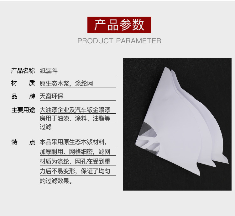 | 产品名称 | 亚马逊热卖一次性纸漏斗100目120目汽车油漆工业涂料专用过滤漏斗 |