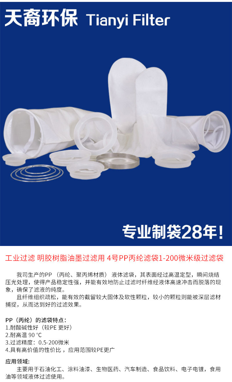| 产品名称 | 4号PP液体滤袋 耐酸碱丙纶无纺布工业石油化工污水处理专用过滤袋 |
