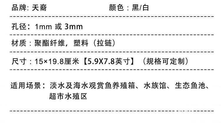 | 产品名称 | 水族鱼缸装滤材网袋网兜 过滤材料拉链袋 白棉活性炭石英球过滤袋 |