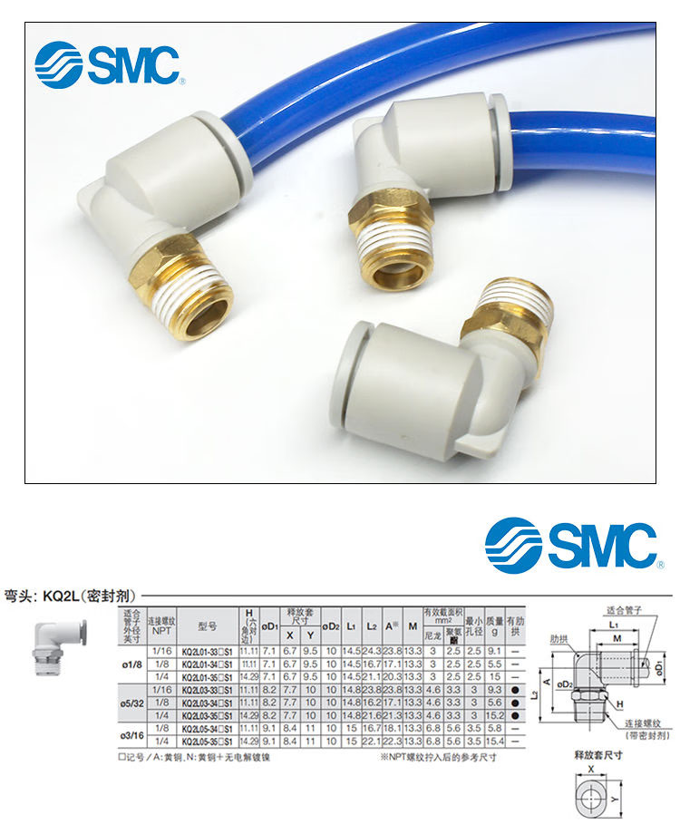 SMC原装接头气管快插螺纹弯通KQ2L04/06/08/10/12-M5/01/02/04AS KQ2L04-01AS 原装SMC