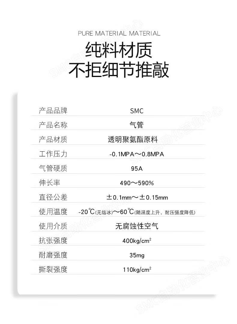 SMC气管PU软管TU0425/TU0604/TU0805/TU1065/TU1208/-100/B/R/C/W TU0425 C-20 透明 外径4MM¥120.00 -